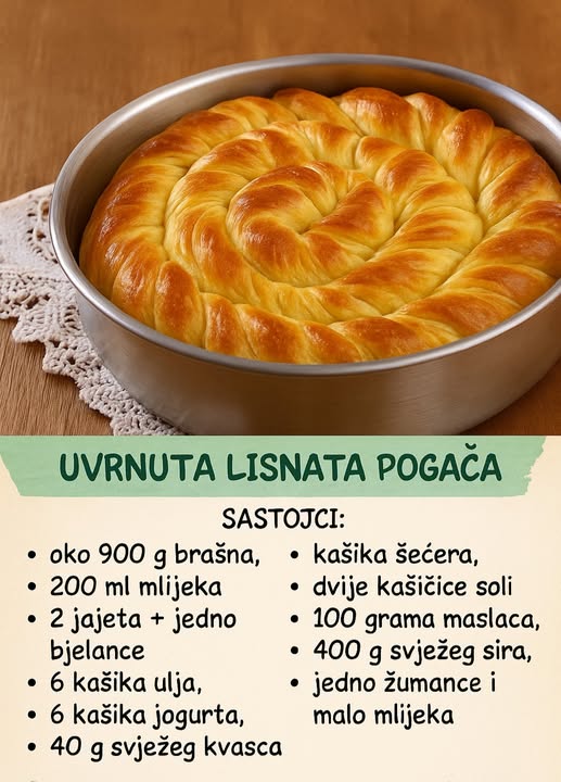 Pogaču peći oko 45 minuta na 180 °C (u zavisnosti od toga koliko vam je rerna jaka).
