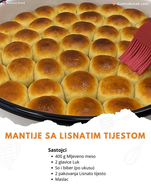Mantije su omiljeno jelo na Balkanu, posebno u Bosni i Hercegovini, gdje se tradicionalno pripremaju s domaćim tijestom i poslužuju uz jogurt ili kiselo mlijeko. Međutim, ova verzija s lisnatim tijestom pruža sličan okus uz značajnu uštedu vremena. Lisnato tijesto se razvalja i reže na kvadrate, puni se nadjevom od pirjanog luka i mljevenog mesa, zatvara u male paketiće i peče do zlatno-smeđe boje. Rezultat su hrskave i ukusne mantije koje će zadovoljiti i najzahtjevnija nepca.