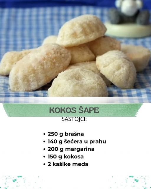 Pjenasto umutiti šećer u prahu i margarin, tome dodati kokos i med.Postepeno dodavati brašno i mijesiti da se dobije ujednačena masa.Modlice za šapice premazati margarinom i posuti brašnom, pa ih puniti ih tijestom i peći u rerni zagrijanoj na 180 °C između 5 i 10 minuta (ovisno o pećnici). Paziti da ne izgore!!Tople “uvaljati” u šećer u prahu.Izvor: coolinarika.com