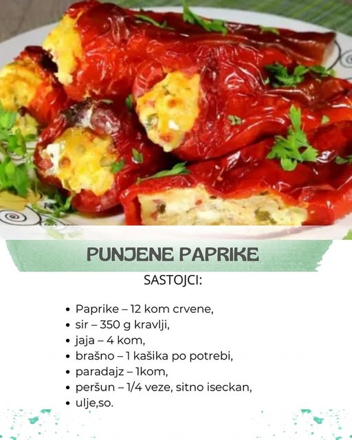 Paprike – 12 kom. crvene,sir – 350 g kravlji,jaja – 4 kom,brašno – 1 kašika po potrebi,paradajz – 1 kom,peršun – 1/4 veze, sitno iseckan,uljem,so.