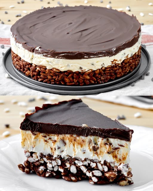 Ubacite nabubrenu rižu, pazeći da bude dobro obložena čokoladom. Nakon toga smjesu premjestiti u kalup, npr. 20 cm, koji ste obložili papirom za pečenje i čvrsto ga utisnuti žlicom ili čašom.