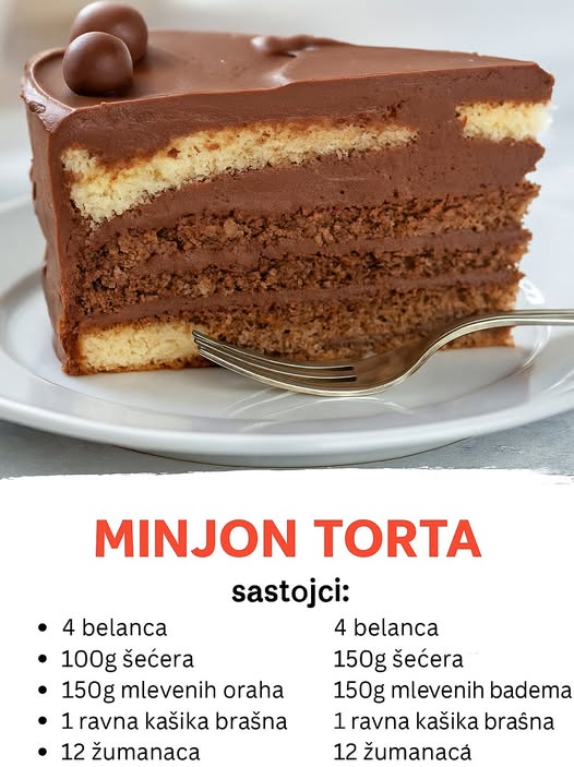 Minjon torta je pravi raj za ljubitelje slatkiša sa bogatim orašastim i čokoladnim ukusima. Ovaj recept može izgledati kao izazov zbog broja slojeva, ali u stvarnosti, koraci su jasni, a rezultati fantastični. Kroz pažljivu pripremu, torta postaje pravi umetnički poduhvat – mekane i vazdušaste kore sa bogatim kremom, upotpunjene čokoladnim ganašem. Savršen je izbor za sve vrste proslava, bilo da se radi o rođendanima, praznicima ili jednostavno porodičnim okupljanjima.