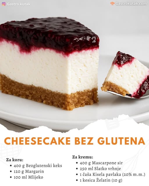 Ovaj bezglutenski cheesecake kombinira hrskavu podlogu od bezglutenskog keksa s bogatom kremom od mascarpone sira i svježim šumskim voćem. Priprema je jednostavna, a rezultat je impresivan – savršen za obiteljska okupljanja ili posebne prilike.