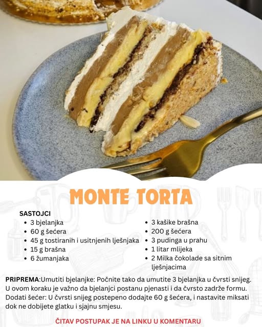 Monte torta je prava kulinarska poslastica koja spaja bogatstvo čokolade, hrskavost lješnjaka i kremaste filove u savršenoj harmoniji. Bez obzira na to da li je pripremate za posebnu priliku ili samo kao slatki užitak za vašu porodicu, ova torta će sigurno ostaviti snažan utisak. Iako se sastoji od nekoliko složenih filova, svaki korak u pripremi je vredan truda, a rezultat je neodoljiva torta koja će vas osvojiti svojim bogatstvom okusa