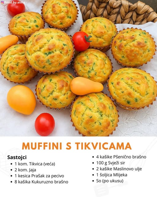 Kombinacija naribanih tikvica, kukuruznog i pšeničnog brašna, svježeg sira te maslinovog ulja stvara smjesu koja nakon pečenja postaje zlatno-smeđa i neodoljivo mirisna. Ovi muffini su izvrsni i dan nakon pečenja, što ih čini praktičnim izborom za obroke unaprijed. Tikvice su poznate po svom visokom sadržaju vitamina i minerala, uključujući vitamine C, A i K, te minerale poput magnezija i kalija.