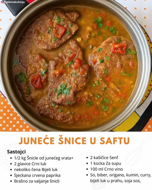 Ako tražite jelo koje će oduševiti cijelu porodicui podsjetiti na domaću kuhinju naših baka, juneće šnicle u saftu su pravi izbor. Ovaj recept donosi savršenu kombinaciju sočnog mesa i bogatog umaka, idealnog za upijanje s pire krumpirom, tjesteninom ili svježim kruhom. Priprema je jednostavna, a rezultat je jelo koje se topi u ustima i ostavlja nezaboravan dojam.