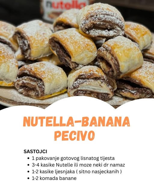 Nutella-banana pecivo je jednostavan, brz i izuzetno ukusan desert koji možete pripremiti u svega nekoliko minuta, a rezultat će svakako zadovoljavati i najzahtevnije sladokusce. Sa lisnatim tijestom kao osnovom, bogatstvom Nutelle, prirodnom slatkoćom banana i hrskavim lješnjacima, ovo pecivo predstavlja savršen spoj tekstura i ukusa. Bilo da ga pripremate za porodičnu užinu ili kao brzinski desert za iznenadne goste, sigurno ćete oduševiti sve koji ga probaju. Za ljubitelje brzih, ali efektnih recepata, ovo pecivo je definitivno nešto što morate isprobati.