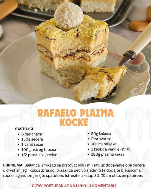 Raffaelo plazma kocke su pravi primer kako jednostavnost može rezultirati savršenstvom. Svaki sloj ove torte donosi poseban užitak – od meke kore sa kokosom, preko bogate i svilenkaste kreme, do hrskavih keksa i osvežavajućeg šlaga. Ne zahteva mnogo vremena ni posebne veštine, što je čini savršenom za početnike, ali i iskusne domačice.