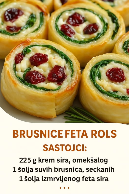 Sastojci: 225 g krem sira, omekšanog 250 g sušenih brusnica, sjeckanih 250 g izmrvljenog feta …