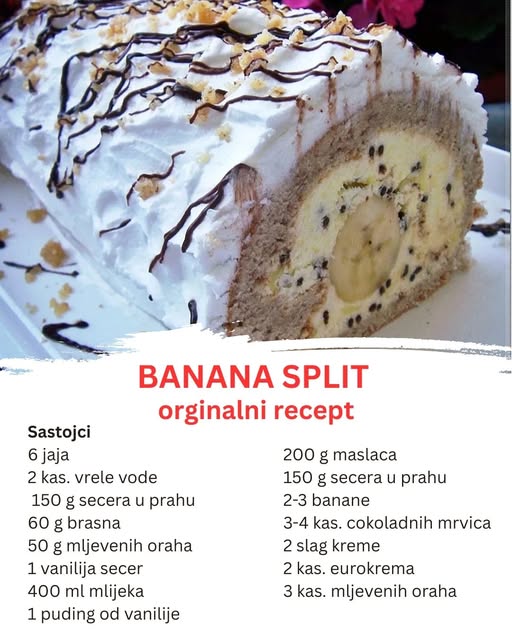 Njegov naziv priziva slike klasičnog banana split sladoleda, ali u potpuno novom, rolovanom ruhu. Idealno za proslave, okupljanja ili samo kao desert kad želite da oduševite i sebe i druge.