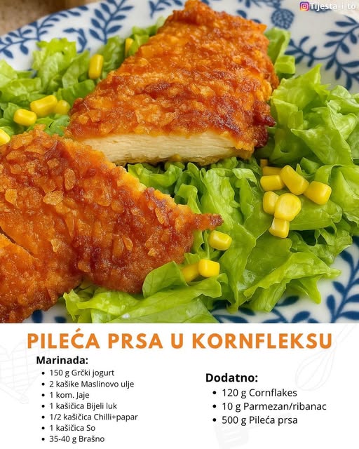 Ako ste u potrazi za receptom koji spaja brzinu pripreme, sočnost mesa i neodoljivu hrskavost, onda su pileća prsa u kornfleksu pravi izbor za vas. Ovaj jednostavan, ali efektan recept donosi savršen balans između mekanog pilećeg mesa i zlatno-smeđe korice od kornfleksa, pružajući vam obrok koji će zadovoljiti i najzahtjevnije nepce..