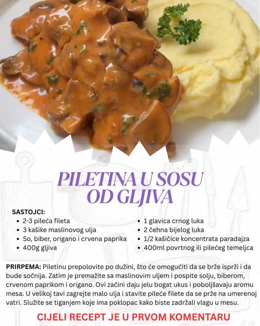 Ovaj recept zahteva samo nekoliko jednostavnih koraka, a rezultat je bogat i ukusan obrok. Evo kako da pripremite piletinu u sosu od gljiva: