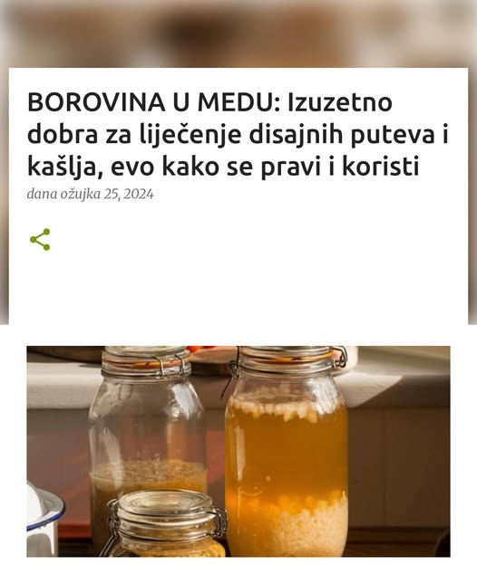 Nakon 40 dana procedimo tečni deo, bacimo ostatke borovine i limuna i dobijeni borov med čuvamo u frižideru.