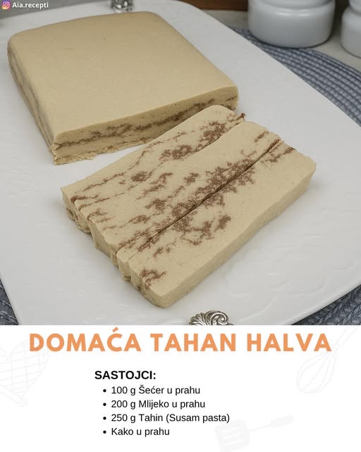 Ako ste ikada poželjeli pripremiti tahan halvu kod kuće, sada je pravo vrijeme da to učinite! Ova orijentalna domaća tahan halva, poznata po svojoj bogatoj teksturi i neodoljivom okusu, pravi se od svega nekoliko sastojaka: tahin paste, mlijeka u prahu i šećera u prahu. Priprema je brza i jednostavna, a rezultat je desert koji će zadovoljiti i najzahtjevnije sladokusce.