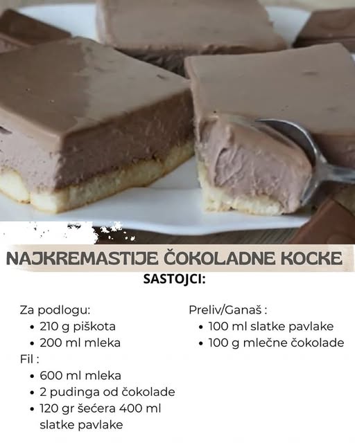 Polovinu mleka sipati u šerpicu i dodati šećer. U drugoj polovini mleka umutiti puding i kada mleko počne da vri, sipati u njega smesu sa pudingom i skuvati. Ostaviti na hlađenje. Umakati piškote u toplo mleko i ređati na podlogu (klup). Umutiti slatku pavlaku, pa puding pa onda slatku pavlaku postepeno dodavati u puding i mutiti. Fil prebaciti preko piškota. Ugrejati slatku pavlaku i preliti je preko izlomljene čokolade i mešati dok se ne rastopi, pa preliti kolač.