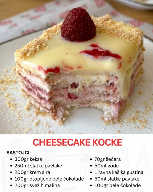 Cheesecake kocke su savršena kombinacija kremastog, voćnog i čokoladnog u jednom laganom desertu koji ne zahteva pečenje, komplikaciju niti mnogo vremena. Idealne su za tople dane, iznenadne goste ili prosto trenutke kada želite da se zasladite bez mnogo truda.
