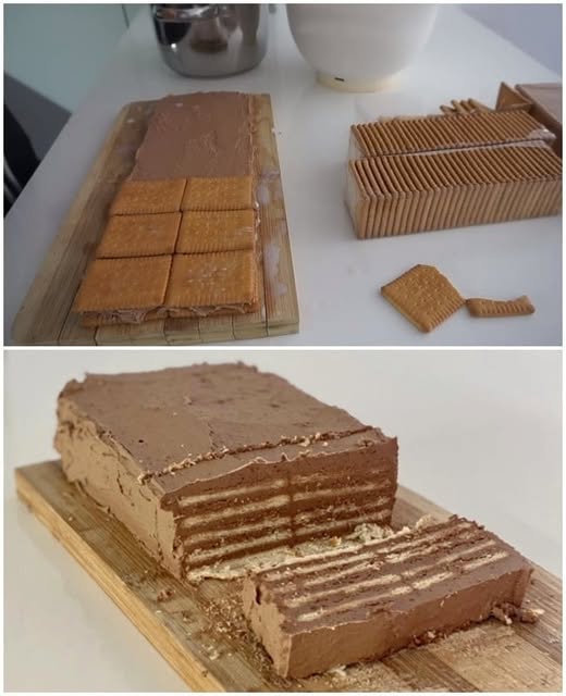 Zagrijte mlijeko na nisku temperaturu i kratko namočite kolačiće, pazeći da zadrže željenu teksturu kada ih umetnete u kolač. Počnite slagati red kolačića, zatim sloj nadjeva i ponavljajte dok ne potrošite sav nadjev. Nakon toga kolač ostavite u hladnjaku nekoliko sati da se stegne prije posluživanja.