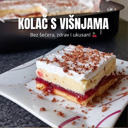 Zdrav i lagan kolač s višnjama bez šećera, idealan za sve koji žele uživati u slatkom bez grižnje savjesti. Sočni sloj od višanja, kremasti vanilin puding i podloga od keksa čine ovaj kolač savršenim spojem okusa i tekstura.