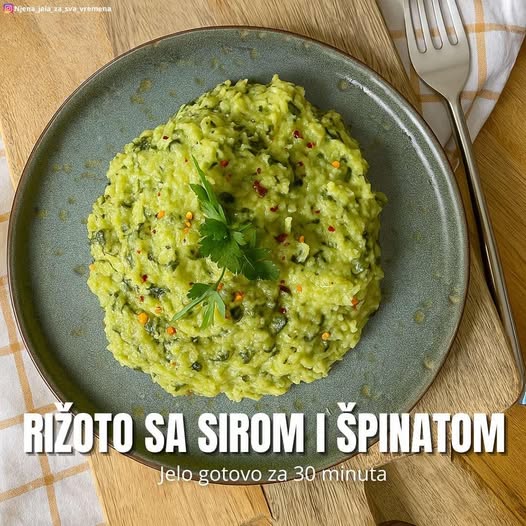 Zašto ovaj recept? Osim što je izuzetno ukusan, rižoto sa špinatom i sirom često se pretražuje kao kremasti rižoto s povrćem, lagani vegetarijanski ručak ili špinatni rižoto s maslacem i sirom. Mnogi ga opisuju kao idealan spoj zdravog i utješnog jela – neke varijante naglašavaju dodatak svježeg sira, a druge kombiniraju s bijelim vinom za sofisticiraniji okus