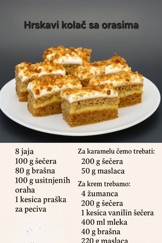 Upute za pripremu ovog divnog kolača sa orasima pogledajte u videu: