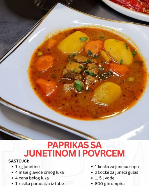 Paprikaš sa junetinom i povrćem nije samo jelo – to je povratak u detinjstvo, u domove gde se kuva s ljubavlju i strpljenjem. Njegova aroma podseća na nedeljne ručkove kod bake, a bogat ukus na jednostavnost domaće kuhinje koja hrani i telo i dušu.