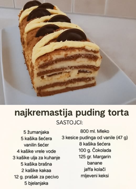 Ovo je zaista najkremastija puding torta koju spremam, prava eksplozija okusa.