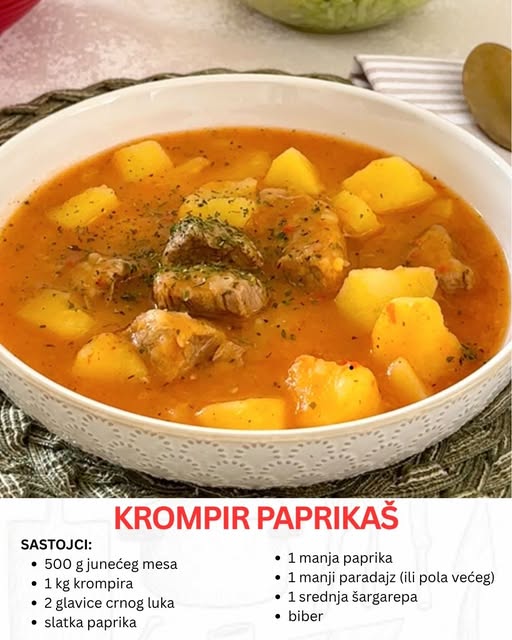 Kada govorimo o klasičnim jelima koja greju i zadovoljavaju na najprirodniji način, krompir paprikaš zauzima posebno mesto u našoj kuhinji. Ovo jelo spaja bogatstvo ukusa mesa i neodoljivu mekoću krompira, začinjeno jednostavnim, ali aromatičnim povrćem i začinima. Idealno je za porodični ručak ili večeru, naročito u hladnijim danima kada nam treba topla i zasitna hrana.