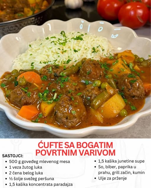 Kada poželite pripremiti obrok koji je bogat ukusima, a istovremeno brz i lak za pripremu, mesne kuglice u bogatom povrtno-mesnom varivu su odličan izbor. Ovaj recept nudi savršen spoj sočnih mesnih kuglica i raznovrsnog povrća koje čini jelo izdašnim i hranljivim. Savršen je za ručak, večeru ili čak za obrok koji možete poneti na posao.