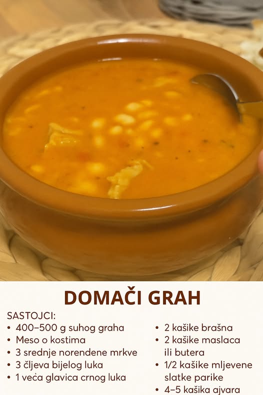 Ovaj tradicionalni recept za grah ne samo da garantuje izuzetno ukusan rezultat, već omogućava i mnogo prostora za prilagođavanje. Bilo da ga pripremate za porodični ručak, prazničnu trpezu ili jednostavno želite da uživate u tanjiru domaće hrane – ova verzija graha će vas osvojiti već pri prvom zalogaju.