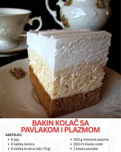 Ovaj recept zove se “Bakin kolač” i to s dobrim razlogom – podseća na one neke starinske, porodične trenutke. Spoj je jednostavan, ali izuzetno delikatan: mekana čokoladno-vanila kora, sočni preliv i bogat fil napravljen od plazme i pavlake, a sve završeno neodoljivim slagom. Slojevi su složeni tako da bude i klasičan i novinski: poznat ukus iz detinjstva, ali sa malim inovativnim tvistom koji ga čini savremenim. Kada se jednom proba, postaje favorit za sve prilike — rođendane, posete, popodnevne kafe, naprosto svaki dan kada želite da stvorite nešto fino, brzo i s ljubavlju.
