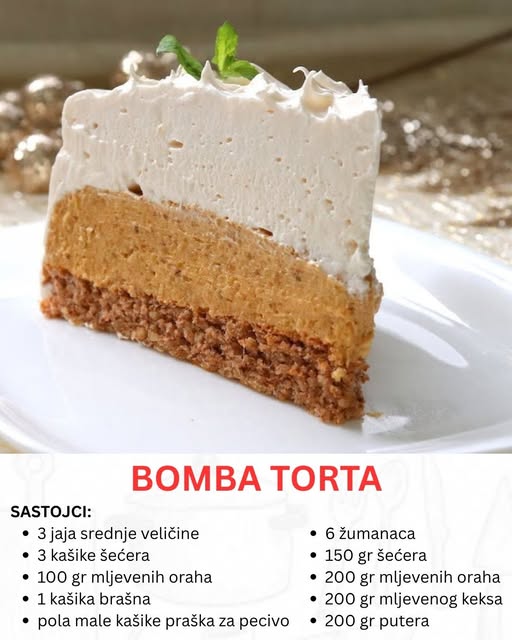 Bomba torta je jedno od onih poslastica koje spajaju bogatstvo ukusa, jednostavnost pripreme i veličinu koja je idealna za veće proslave. Ova torta kombinuje kremaste slojeve sa mljevenim orasima i keksom, dok se završava posebnim karameliziranim šaumom. Oduševiće sve ljubitelje slađih, ali i kremastih kolača. Što je još bolje, proces pripreme je prilično jednostavan, pa ne morate biti stručnjak da biste uživali u ovoj torti.
