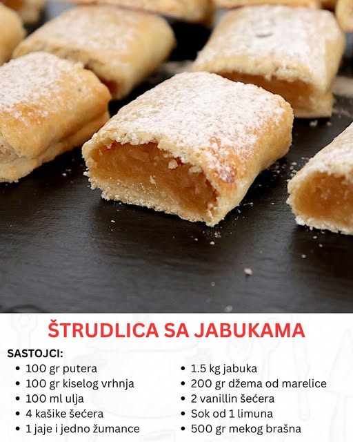 Štrudlice sa jabukama i marelicama su pravo otkriće za sve ljubitelje jednostavnih, a istovremeno neodoljivih kolača. Ovaj recept je savršen za svakoga ko traži brz i ukusan kolač koji se lako pravi, a pruža fantastične rezultate. Ove štrudlice su prhke, mekane, a uz to su i mirisne i sočne. Bez obzira da li ste početnik u kuvarstvu ili iskusni majstor, sigurno ćete uživati u pripremi ovog slatkog jela.
