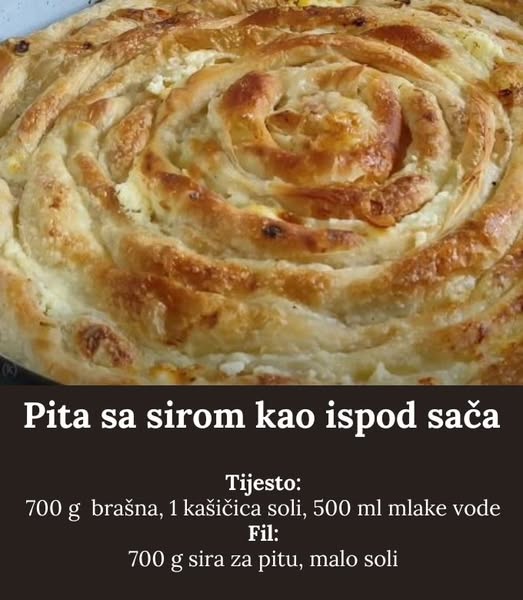 Sastojci za tijesto;700 g brašna1 kašičica soli500 ml mlake vode. Fil;700 g sira za pitumalo …