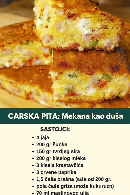Carska pita, prelep recept Mekana kao duša… najbolji recept na internetu. Potrebno je: 4 jaja200 …