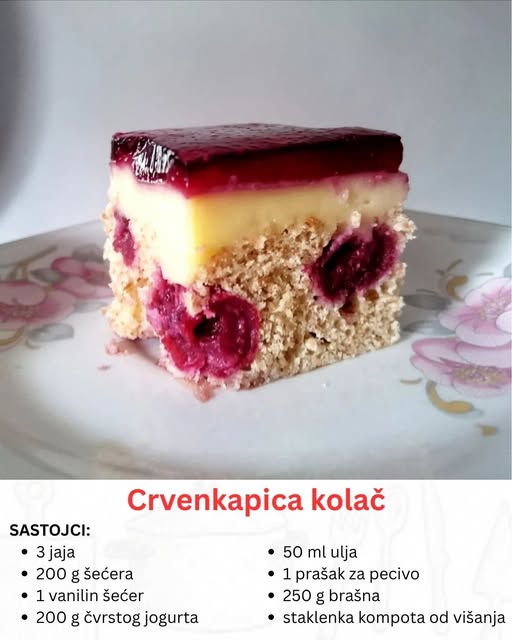 Crvenkapica: Sočan biskvit, kremasta sredina i voćna kapica – Sve u jednom!