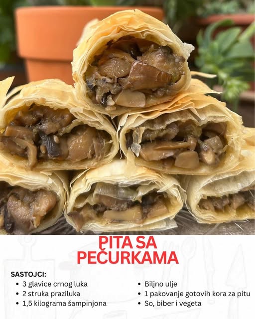 Ovaj recept nije zahtevan, ne traži skupu opremu, niti posebne kulinarske veštine, ali traži strpljenje, toplinu i želju da se nešto jednostavno pretvori u nešto posebno. Zato, ako ste spremni da zasučete rukave i uselite šumski dah u svoj dom – ova pita sa pečurkama će vas osvojiti.