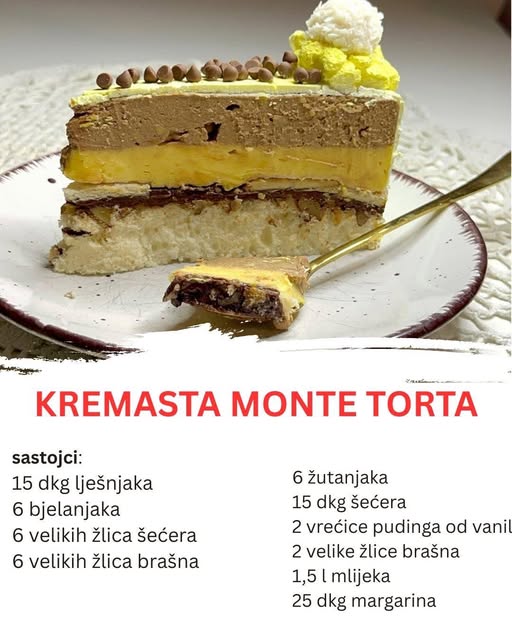 Monte torta je omiljeni desert koji spaja bogate okuse čokolade, vanilije i lješnjaka u jedno …