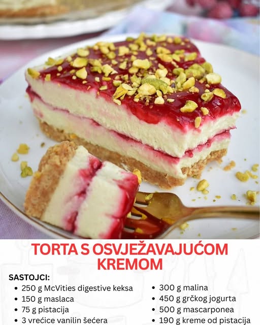 Ako tražite desert koji savršeno kombinuje osvežavajuću kiselkastost malina i bogatu, kremastu teksturu pistacija i …
