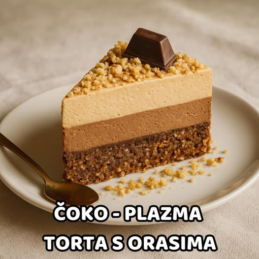 U prvoj verzini ove torte umesto gotovih kora peku se tri patišpanja od 4 jaja, 4 kašike šećera, 3 kašike mlevenih oraha i 1 kašika brašna a onda se patišpanji natapaju čokoladnim mlekom. Po Ljiljinom savetu, uzela sam gotove kore i nisam se pokajala. U fil sam umesto 400 g plazme stavila 350 g jer mi se kod prvog pravljenja torte pokazalo da je fil malo gušći. Količinu šlaga sam takođe smanjila, na zahtev dece, pa tako vi uradite po svom ukusu 🙂