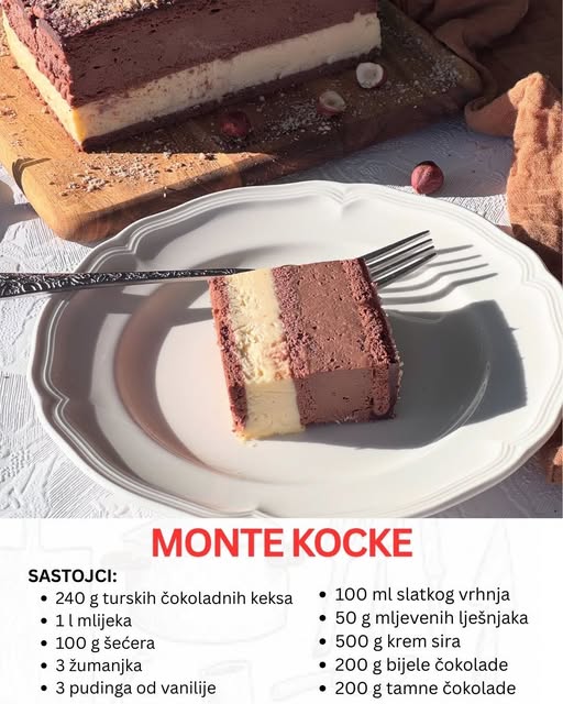 Postoje kolači koji osvoje na prvi zalogaj, a među njima posebno mjesto zauzimaju Monte kocke. Ova raskošna poslastica dobila je ime po poznatom Monte desertu, koji je već dugo omiljen među sladokuscima. Ono što je čini posebnom jeste savršen spoj kremastih slojeva, hrskavih keksa i čokoladne glazure, zbog čega mnogi kažu da je nemoguće pojesti samo jedan komad.