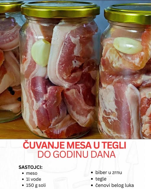 U vremenima kada nije svako domaćinstvo imalo pristup frižideru ili zamrzivaču, ljudi su morali da budu snalažljivi i da pronalaze načine kako da sačuvaju meso na duži vremenski period. Jedna od tih starih i proverenih metoda jeste čuvanje mesa u staklenim teglama, uz pomoć soli, začina i dužeg kuvanja. Ovaj postupak ne samo da produžava trajnost mesa, već i čuva njegov ukus, aromu i teksturu, omogućavajući domaćicama da imaju spreman obrok i bez modernih uređaja.