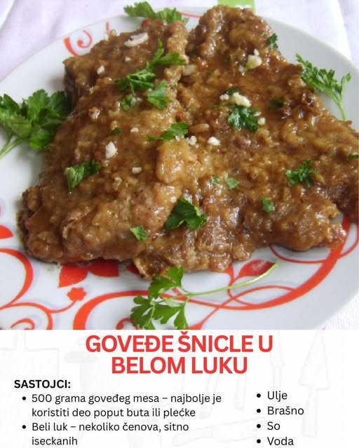 Kada se govori o jelu koje spaja jednostavnost pripreme i bogatstvo ukusa, goveđe šnicle u belom luku zauzimaju posebno mesto u domaćoj kuhinji. To je recept koji mnogi pamte iz detinjstva, jer se često nalazio na porodičnim trpezama, naročito nedeljom ili kada su dolazili gosti. Ono što ovu kombinaciju čini toliko privlačnom jeste savršena ravnoteža između mesa i arome belog luka, začinjena blagom notom brašna i sočnim sosom koji nastaje tokom dinstanja.