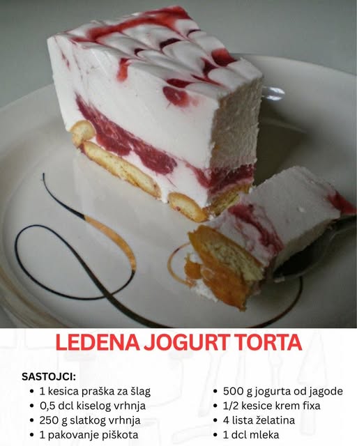 Ledena jogurt torta je pravi primer kako nešto jednostavno može biti istovremeno i elegantno i neodoljivo ukusno. Kombinacija piškota, jogurta i lagane kreme stvara desert koji se topi u ustima, dok osvežavajući preliv od jagode dodaje poseban pečat. Ako ste ljubitelj osvežavajućih kolača, Ledena jogurt torta će sigurno postati jedan od vaših omiljenih recepata. Probajte je jednom i poželećete da je spremate iznova i iznova.