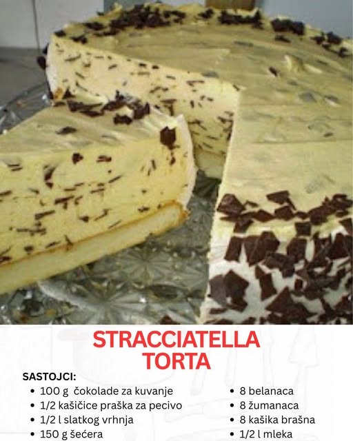 Ako tražite poslastica koja spaja bogatstvo ukusa sa jednostavnom pripremom, Stracciatella torta je pravi izbor. Ova torta je lagana, kremasta i prepoznatljiva po čokoladnim komadićima koji se ravnomerno raspoređuju u svakom zalogaju. Njena priprema možda zahteva malo pažnje i vremena, ali rezultat je spektakularan – torta koja vizuelno i ukusom očarava svakog ko je proba.