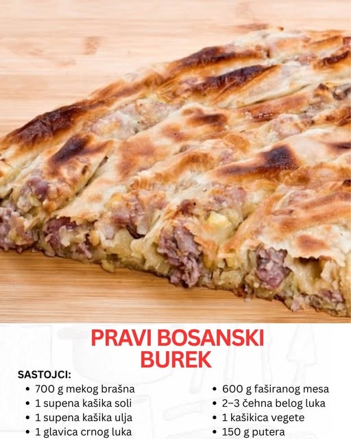 Burek nije samo pita s mesom – to je simbol bosanske kuhinje, deo svakodnevnice i tradicije koja se prenosi s kolena na koleno. Malo je jela koja izazivaju toliko emocija i uspomena kao pravi bosanski burek. Mnogi pamte miris bureka iz bakine pećnice, toplo testo koje pucketa pod prstima, i sočan nadjev koji se širi kućom dok se peče.