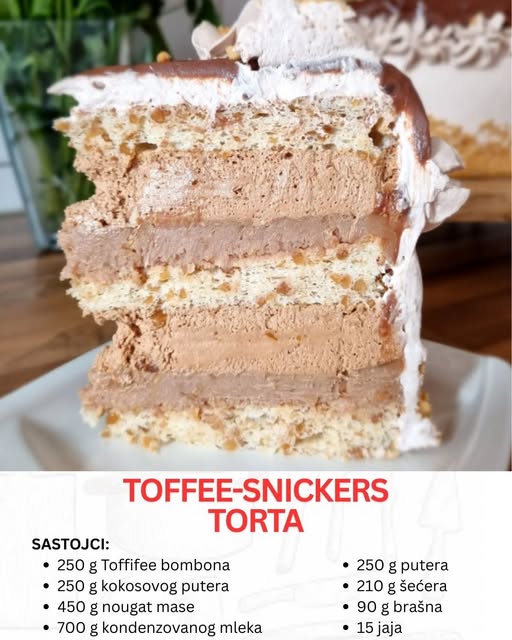 Postoje kolači i torte koje deluju jednostavno i skromno, ali čim ih probate shvatite da u sebi nose pravi festival ukusa. Jedna od njih je upravo Toffee-Snickers torta. Već samo ime asocira na raskoš – spoj nugata, toffee karamela, kikirikija i biskvita. Ova torta odiše bogatstvom, jer se u njoj prepliću različite teksture: hrskavi orašasti plodovi, kremasta punjenja i sočne kore.