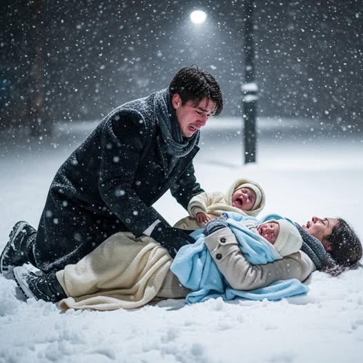 Pomislio je da je to samo gomila starih ćebadi – sve dok nije ugledao malu ruku kako viri iz snijega.Ispod sloja promrzle odjeće ležala je tinejdžerka, blijeda i onesviješćena, držeći dvoje malih beba u naručju. Njihovi tihi jecaji jedva su se čuli.Bez razmišljanja, Ethan ih je podigao i otrčao do svog automobila. „Izdržite… molim vas,“ ponavljao je dok je zvao svog ljekara.