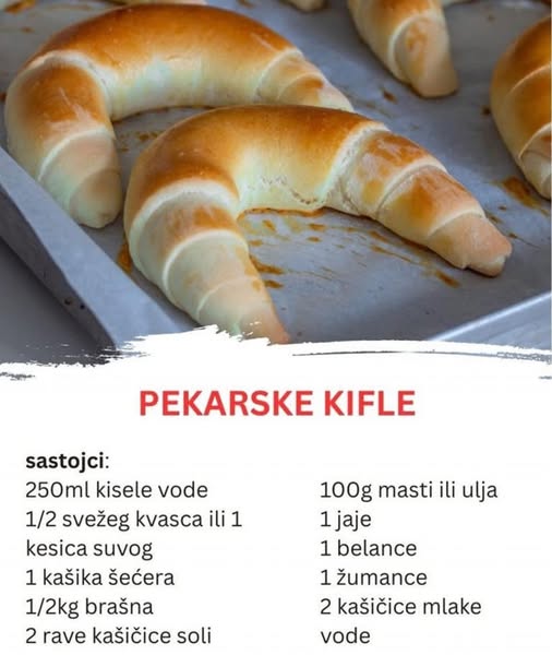 Pekarske kifle su klasik koji nikada ne izlazi iz mode. Ovaj jednostavan recept omogućava vam da u svom domu doživite pravi miris pekare, uz minimalan napor i uz samo nekoliko osnovnih sastojaka. Svaka kifla koja izađe iz rerne biće meka, sočna, sa savršenim slojem na vrhu, a kada ih probate, biće vam jasno zašto su ovi kolači omiljeni već generacijama.