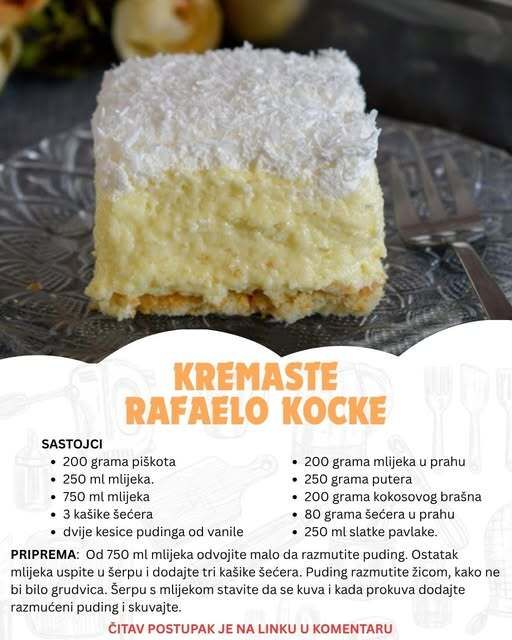 U moru savremenih, brzih i često komplikovanih recepata, ponekad zaboravimo na klasične, domaće poslastice koje mame osmehe i vraćaju u detinjstvo. Jedna od takvih je i recept za kremaste Rafaelo kocke, koji objedinjuje poznate sastojke u nežnoj, bogatoj strukturi i nezaboravnom ukusu.