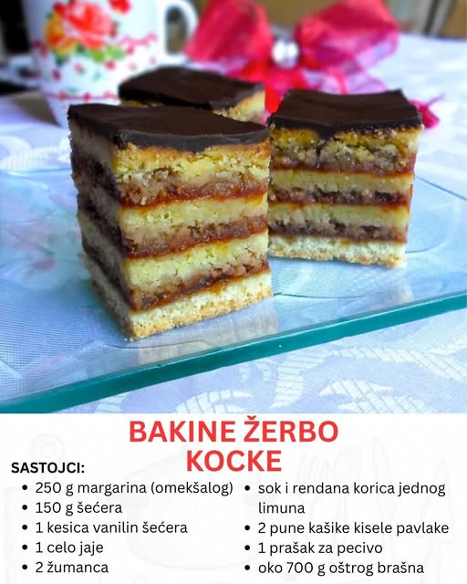 Postoje kolači koji nikada ne izlaze iz mode, bez obzira na nove trendove u poslastičarstvu. Jedan od njih su i Žerbo kocke – desert koji se prenosi s kolena na koleno, simbol porodične topline i mirisa domaće kuhinje.